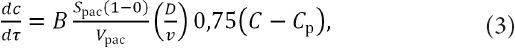 где Sрас – площадь поверхности расплава; Vрас – объём расплава; В – константа; Ср и С – равновесная и текущая константа соответственно; 0 – доля площади поверхности, заблокированная поверхностно-активными элементами (ПАЭ); D – коэффициент диффузии (D = Dмол + Dтурб, где Dмол – молекулярная диффузия; Dтурб – турбулентная диффузия); ν – кинематическая вязкость.