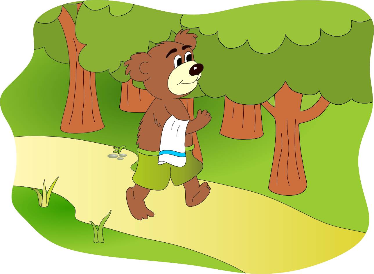 Миша этим утром как раз отправился на речку и решил пригласить за компанию своего друга Беляка. Медвежонок подошел к забору Зайца и увидел, что тот поливает грядки с морковкой.