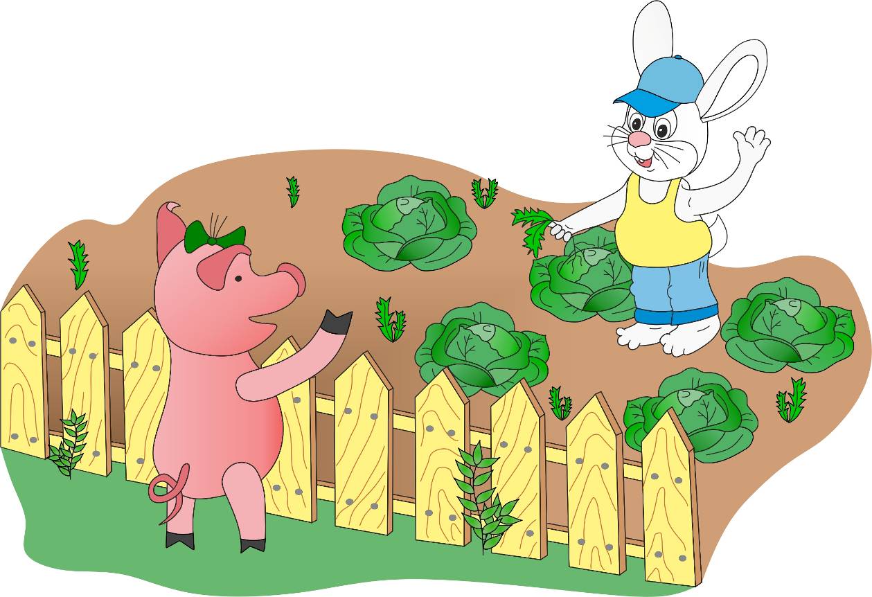 Поход в библиотеку был запланирован на вечер, поскольку Беляк с утра работал, а Миша обычно спал до обеда. Пока Беляк дергал сорняки вокруг капусты, к его забору подошла Свинка Хрюня, которая очень любила валяться целыми днями в какой-нибудь луже.