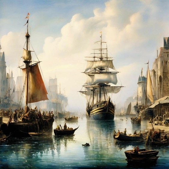 Держа за руку Мельхиора, чтобы не потеряться, Друд вертел головой во все стороны. Прямо над ним возвышались бушприты кораблей, украшенные резными фигурами, с шумом разворачивались паруса. Матросы, казавшиеся снизу совсем маленькими, ловко перебирались по вантам, закрепляя снасти. Пахло кожей, смолой, старым потом и свежим деревом, селёдкой и пряностями.