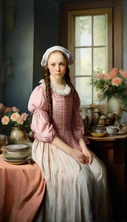 Навстречу молодым людям поднялась темноволосая девушка в розовом домашнем платье. На шее у неё была повязана тонкая косынка. Лицо девушки, свежее и румяное, излучало добродушие и радость.