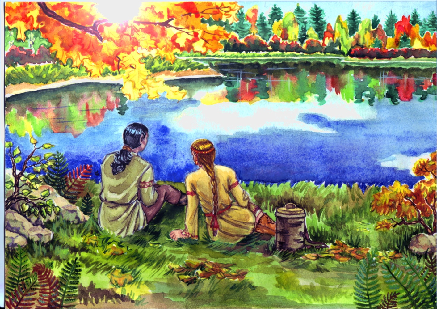 Другая картина имела форму во много раз увеличенного зерна пшеницы. На ней четко просматривался женский силуэт. Голова женщины, резко очерченная по контуру, была словно освещена слишком ярким светом, от чего конкретные черты лица терялись. Стиг считал, что это одна из дочерей духа земли. Он объяснял сыну, что такие работы Фиилмарнен подкидывает, чтобы мастера, соблазнившись, меняли свободу и солнечный свет на мастерство делать подобные вещи и вечное рабство под землей. Заканчивать же изображения животных кузнец запрещал потому, что в них могли вселиться злые духи. Главным другом Снорки в доме Стига стала его ровесница Хилла, родная дочь кузнеца. Как и мальчик, она целыми днями сидела в кузне: лепила формы, крутила украшения из проволоки, заполняла выемки красной и голубой эмалью. После работы дети часто вместе ходили в лес. Особенно они любили озеро с черной водой, находившееся сразу за буреломом. Оно было окружено склонившимися над его поверхностью старыми березами, которые много десятков лет сбрасывали на его дно свои окрашенные осенью в лимонный цвет листья. Листья эти, скапливаясь на дне, и придавали озеру черный цвет. Дети любили посидеть среди корней старых берез, покрытых красноватыми и серыми звездочками лишайников, а также нырять в глубины черного озера и мягко скользить по дну, касаясь руками ковра перегноя. Небо и деревья при взгляде на них сквозь толщу воды казались частью нереального мира, окутанного зеленоватой колышущейся дымкой.
