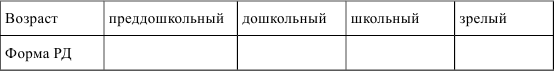 Задание 2. Какая форма речевой деятельности (РД) является ведущей в разные возрастные периоды? Заполните таблицу: