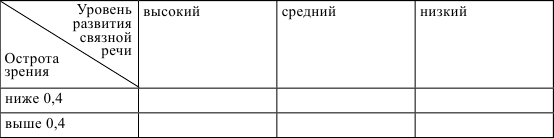 Обследование связной речи детей с амблиопией и косоглазием выявило следующее, что в зависимости от состояния зрительного и речевого развития испытуемые составили три подгруппы (см. табл. 2).