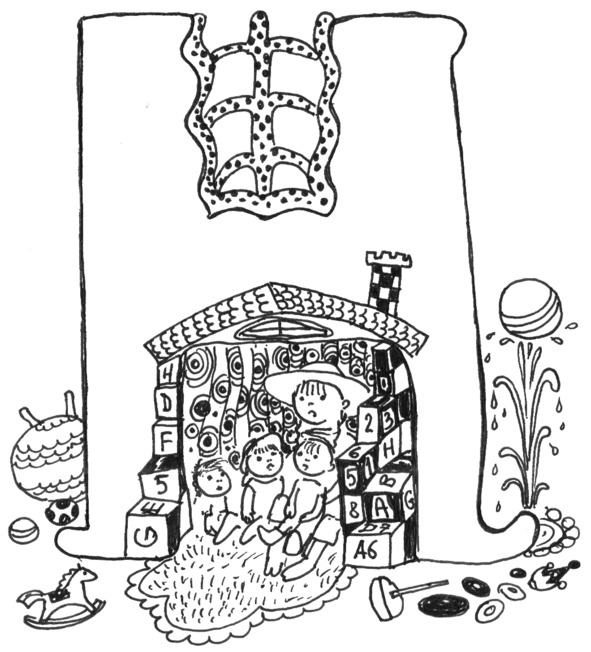 Все они спали… ой, нет. Вон та малышка не спит, складывает кубик на кубик. А вот и Валенок! Лежит в кроватке и возится, хлопает глазками. Возле него сидит ладушка Кеша и поёт ему песенку: