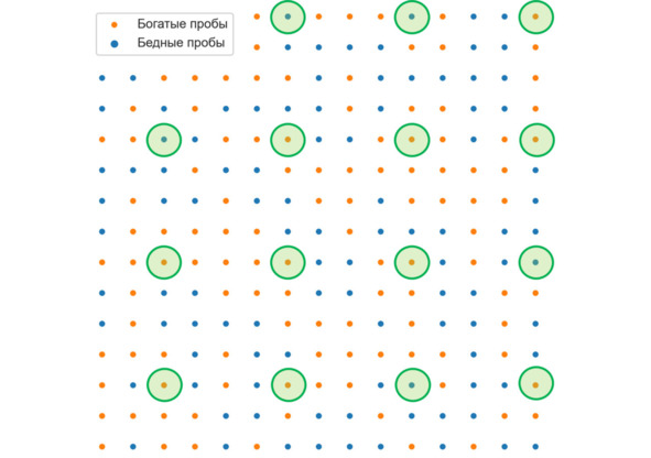 Напротив, данные опробования этого тела, отобранные по регулярной сети (вопрос о плотности сети, позволяющей получить представительную выборку, решается в каждом случае индивидуально), скорее всего, являются представительными для данного тела (но, скорее всего, непредставительными для всего месторождения). Поэтому при заявлении «эта выборка является представительной» неплохо бы уточнять, представительной для чего.