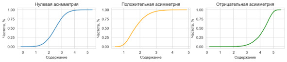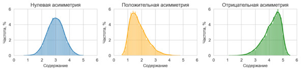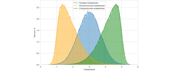 Кроме нормального распределения, также достаточно распространенным является так называемое логарифмически нормальное, или короче – логнормальное распределение: такое, при котором нормальному распределению не противоречат логарифмы значений изучаемой величины. Логнормальное распределение имеет правостороннюю асимметрию – то есть его среднее смещено по оси абсцисс вправо от медианы, а коэффициент асимметрии положителен.