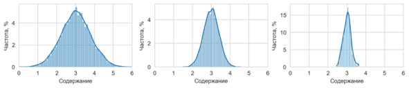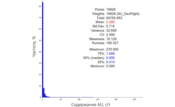 Это правило позволяет не только находить интервал, куда наверняка попадут практически все значения интересующей нас переменной, но и искать значения вне этого интервала. Эти значения называют выбросами. Появление выбросов не является «запрещенным» с точки зрения нормального распределения, но их наличие маловероятно, а потому подозрительно. Это правило было бы хорошим инструментом для поиска ураганных содержаний, если бы не одно «но»: для его применения требуется, чтобы распределение было, во-первых, однородным, а, во-вторых, не противоречило нормальному закону распределения. Что, к сожалению, чаще всего не так (причем зачастую не выполняется ни первое, ни второе требование).