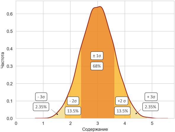 – 99,7% значений находятся в пределах плюс-минус 3 стандартных отклонения от среднего значения.