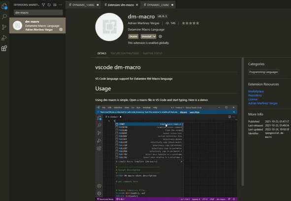 VSCode является «штатным» текстовым редактором для интегрированной среды программирования Visual Studio4, распространяемой Microsoft. Извлеченный из этой IDE, он сохранил многие полезные особенности «старшей сестры» (из которых, правда, далеко не все будут полезны при макрописательстве):