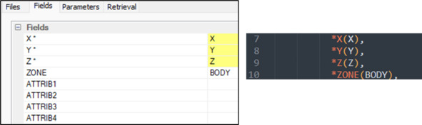 Вкладка Fields процесса SELWF в интерфейсе Datamine и в макросе