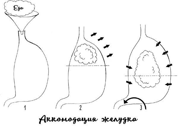 Желудок представляет собой резервуар с накопительной функцией. Затем происходит механическая обработка пищи – путем сокращения желудок ее переминает и перемешивает – и выделительная функция, когда желудок выталкивает всю эту еду в нужном объеме, нужного диаметра и в нужном количестве.