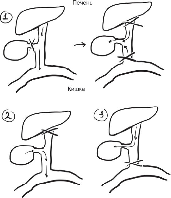 Из желчных путей в двенадцатиперстную кишку выделяется желчный микс, состоящий из самих желчных кислот и дополнительных компонентов, холестерина, лецитина. Все это смешивается с жиром из пищи, это дополняет смесь жирными кислотами и глицерином. Потом организм забирает из этой смеси жирные кислоты или жир – для этого все и делалось, чтобы обеспечить расщепление и всасывание в организм жиров. После жиров организм возвращает себе обратно примерно 50 % желчных кислот. Это происходит абсолютно пассивно с нашей стороны, но весьма активно со стороны микрофлоры кишечника. Именно полезные кишечные бактерии помогают нам вернуть обратно желчные кислоты, открепляя от них лишние атомы и превращая в растворимую форму. Остальную часть организм забирает, активно подсасывая самые необходимы желчные кислоты, а лишние 10–15 % желчных кислот уходит в унитаз. Поэтому при проблемах с кишечником или с живущей в нем микрофлорой многие сбои желчевыделения являются последствием.