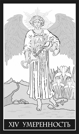 Ангел времени часто появляется в сказках и мифах. Герой ранен или убит – отыгрывается мистерия карты Смерть. Следующей картой идет Умеренность: появляется некто с двумя сосудами, кто возвращает героя к жизни, – это и есть ангел времени.
