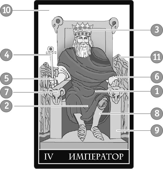 Император воплощает собой власть, государственные структуры и порядок. Его характеризуют осознанность, стабильность, реализм, объективность, ответственность, самообладание. Однако порядок, превращенный в самоцель, угнетает. Характеризуя эту карту, можно вспомнить, как в скандинавской мифологии боги плодородия – ваны, связанные с матриархальным строем и земледелием, были вытеснены асами – богами, имевшими патриархальный норов. Император – это ас, военный вождь, глава племени, которому принадлежит будущее. Он руководит, завоевывает, отстаивает свои позиции.