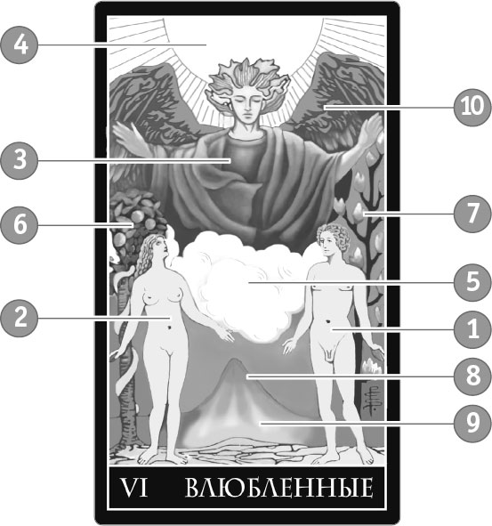Это карта человеческой любви как выражения единства и гармонии и составной части пути, истины, жизни. В духовном смысле эта карта символизирует таинство Завета. С другой стороны, Влюбленные – это и недостижимые идеалы, и неврозы на почве любви, и слабость в принятии решений, и внутренние противоречия.