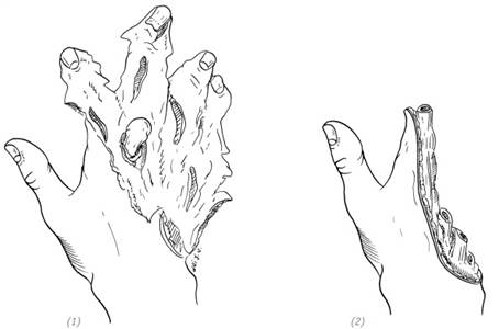 Рис. 5–6. Повреждение вследствие тяжёлой компрессии нескольких пальцев и части кисти