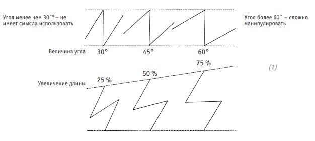 Рис. 6–1. Схематическое изображение пропорциональных соотношений увеличения длины в зависимости от различных показателей величины угла при Z-пластике