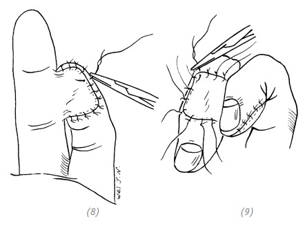 Рис. 2–11. Закрытие раны после ампутации кончика (ногтевой фаланги) пальца