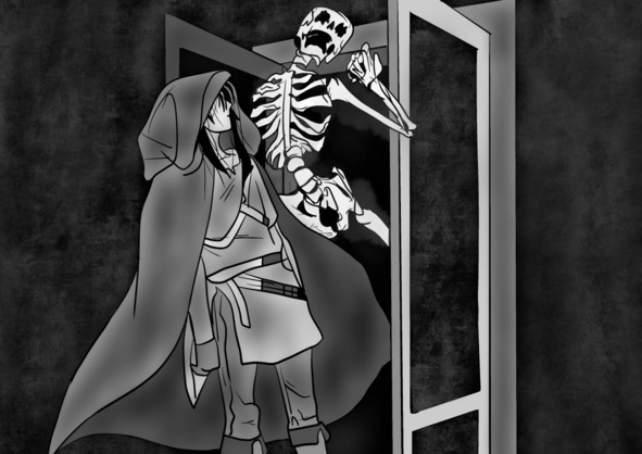 Испуганный ребёнок так и сделал, и это оказалось правдой. Скелета больше не было, а дверька продолжала дрыгаться, он сел на место.