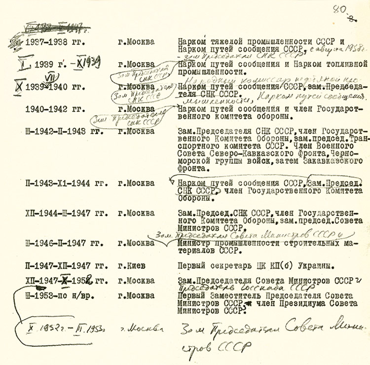 Сведения о трудовой деятельности Л.М. Кагановича с 1908 по 1953 год 1953 [РГАСПИ. Ф. 81. Оп. 3. Д. 413. Л. 78–80]