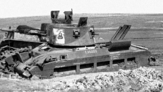 Поле битвы под Харьковом изобиловало подбитыми танками. Свежие жертвы, такие как британский танк «Матильда» слева, соседствовали с ржавыми корпусами, оставшимися от битв 1941 года, как этот БТ-7 справа