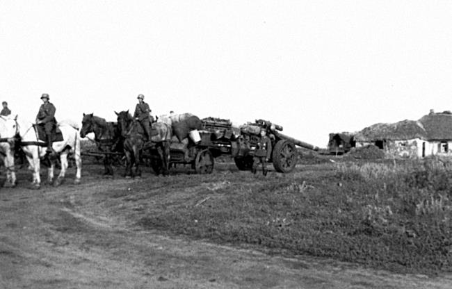 Упряжки тянут 5 500 – кг гаубицы на запасные позиции. Дивизия должна была принять участие в операции «Вильгельм», которая должна была начаться через несколько дней, но была отложена до 10 июня из-за проливных дождей