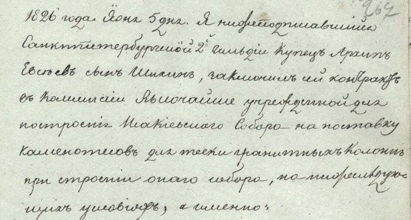 Копия контракта, заключённого с А. Е. Шихиным 5 июня 1826 г.