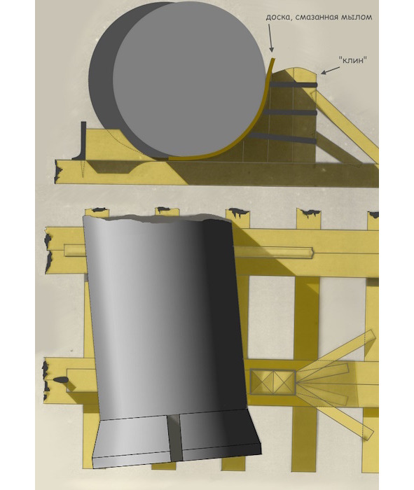 Конструкция клина для выпрямления направления качения колонны (на основе чертежа Антонио Адамини). Папка презентации Адамини хранится в архиве НТБ ПГУПС