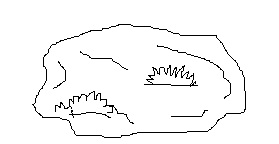 Сначала, астронавт изобразил две вариации упоминаемых пузырьков: на этот раз, вместо полукруга линий с черточками активных жгутиков органелл, ее образ представлялся волнистой линией в первом, и зигзагообразной с открытыми углами во втором изображении. Предложив попробовать малышу обе вариации, астронавт уступил место у плиты. Поначалу, малыш знакомился с новыми образами, всматриваясь в новые линии, перемещаясь возле борда и водя оком по лежащим рядом письменным принадлежностям. Затем, периодически меняя листок на уголек или некоторые «неантропоморфные» для существа виды палочек, оно стал пытаться изобразить волнистый рисунок. Получалось менее округло, чем необходимо, и ближе к финальной части более размашисто. С остриями же выходило куда лучше. Так как плавные волны получались у малыша в более крупном масштабе, сталкер подкорректировал первичный рисунок, заменив плавную волнистую линию на более острие-образную.