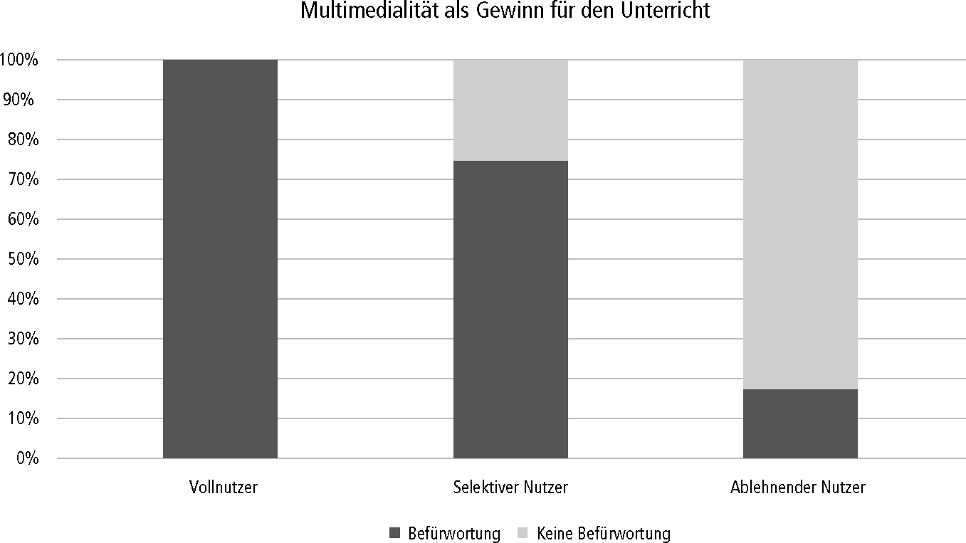 Abbildung 4: Anzahl der Lehrkräfte des jeweiligen Nutzertyps, die Multimedialität als Gewinn für den Unterricht betrachten