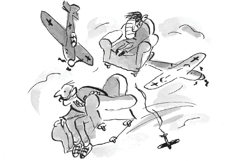Grandpa had an ancient wooden record player the size of a bath. On it he would play booming orchestral music, with the volume as high as it would go. Military bands were his favourite, and together Jack and his grandfather would listen to huge classical pieces like Rule, Britannia!, Land of Hope and Glory or the Pomp and Circumstance Marches way into the night. Two old armchairs would become their cockpits. As the music soared, so did they in their imaginary fighter planes. A Spitfire for Grandpa and a Hurricane for Jack. Up, up and away, they would go. Together they would fly high above the clouds, outwitting enemy aircraft. Every Sunday night the pair of flying aces would win the Battle of Britain, without even leaving the old man’s tiny flat.