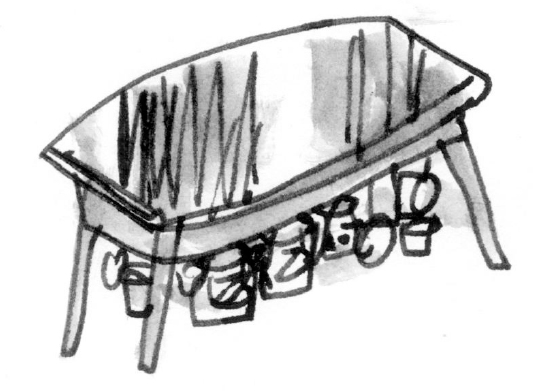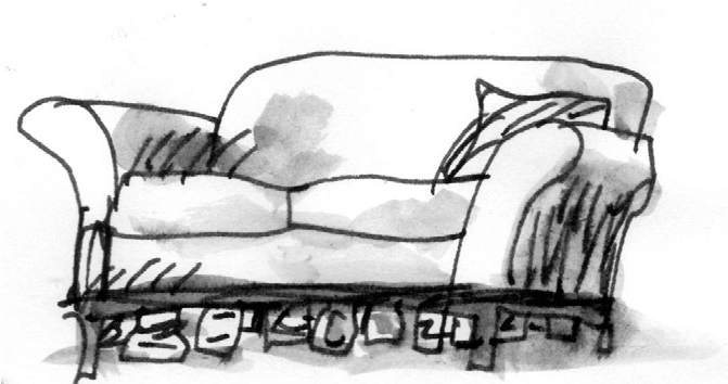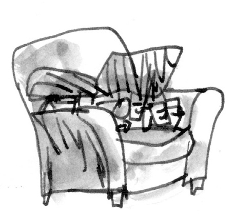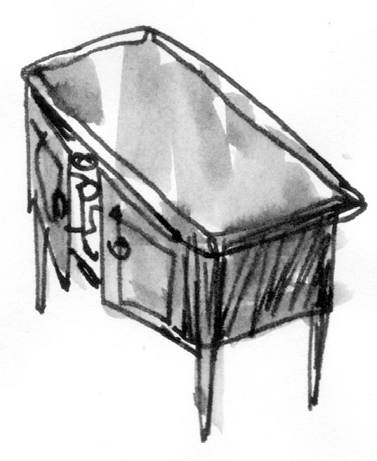 Ned rolled past his sister’s bedroom and headed into the living room. Now, thought Ned, where would be good hiding places?