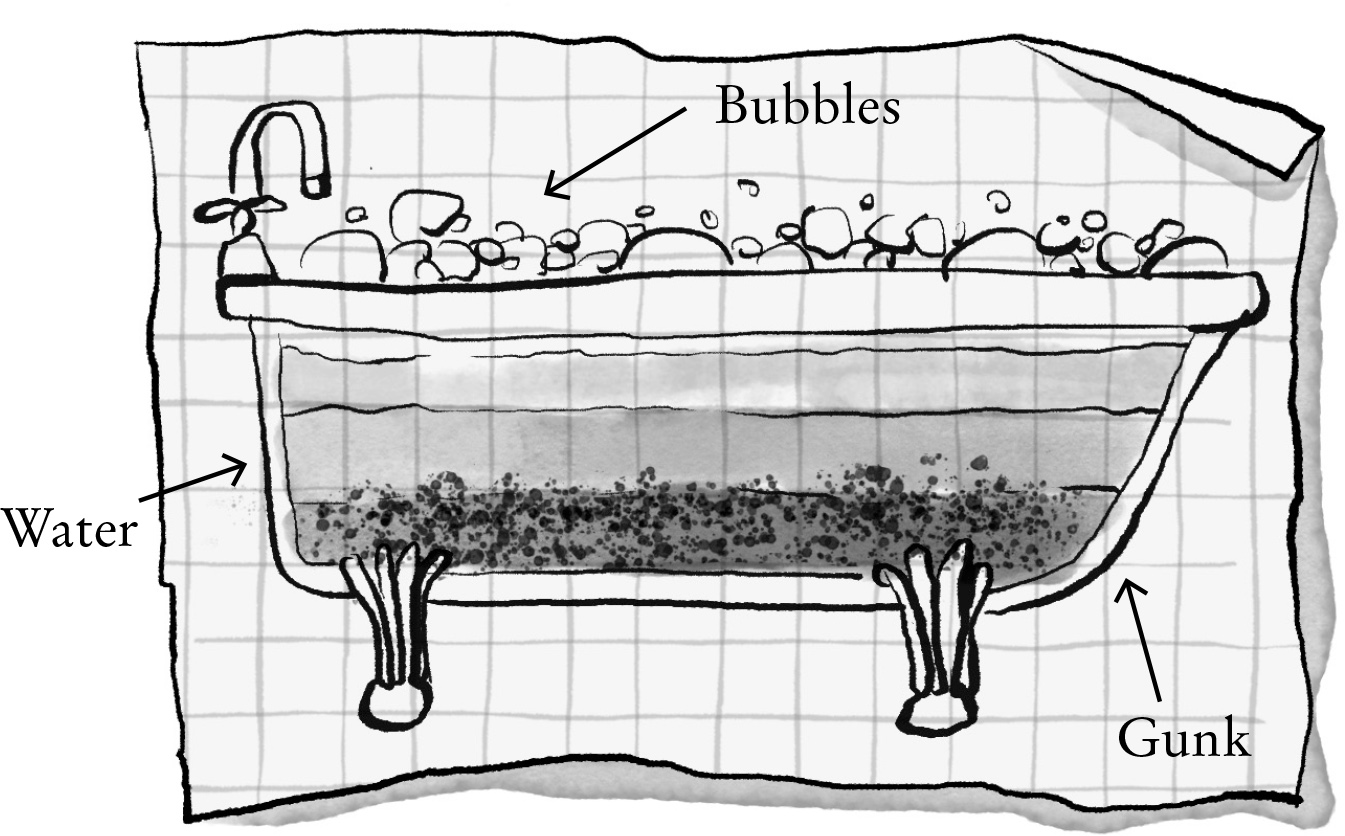 One by one, he opened the jars of gunk, and poured them into the bath.