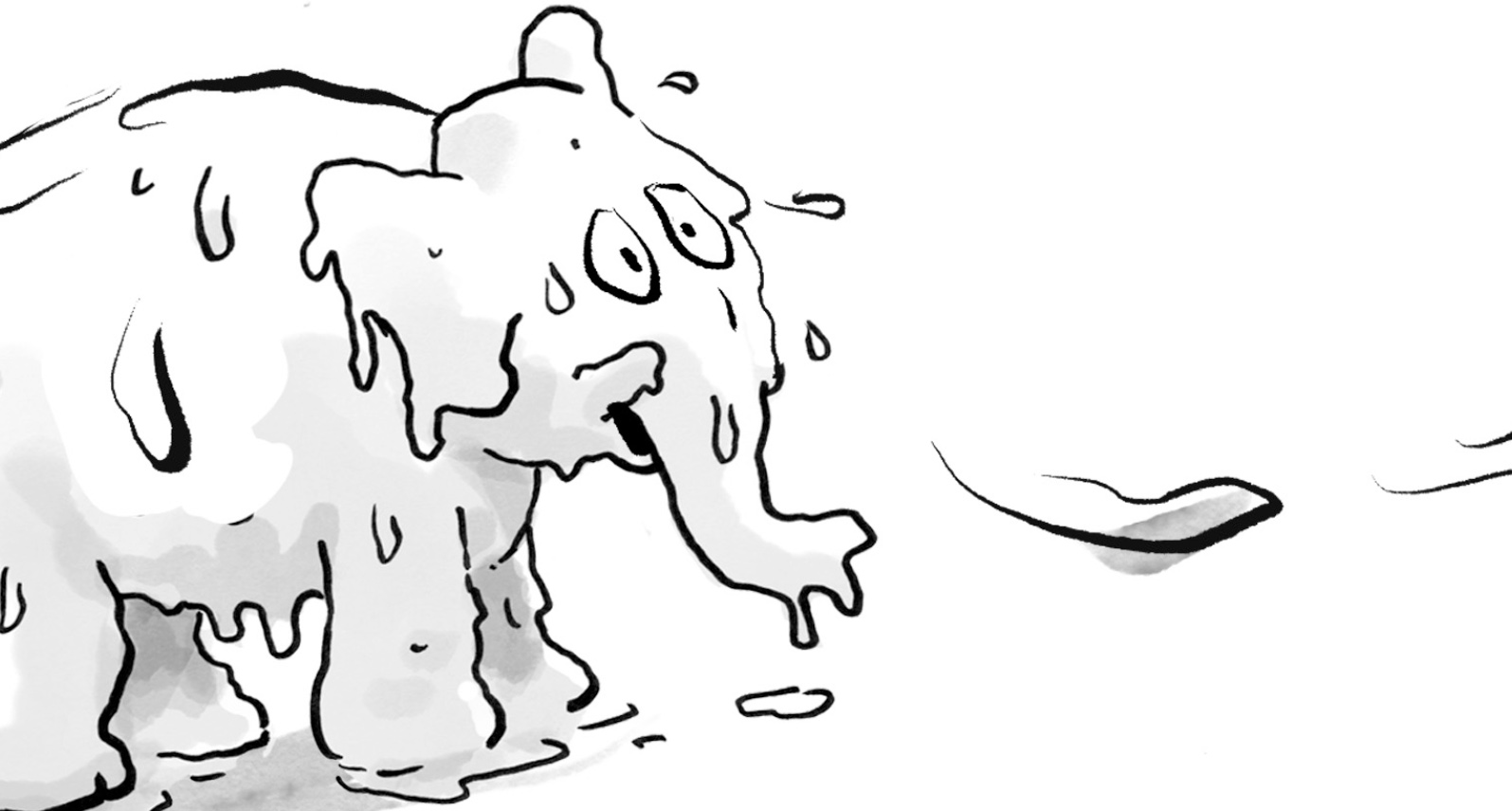 It spurted itself all over the bathroom ceiling before oozing back down to the floor to become an elephant.
