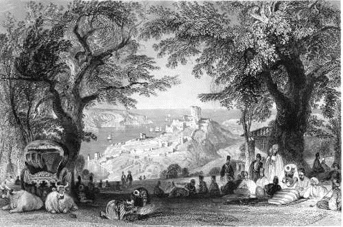 On the shores of the Bosphorus, opposite Therapia, on the Asiatic side, is one of those lovely, and extensive valleys, which open on the strait, and add so much to its beauty. Here the sultans possessed a kiosk, to which they sometimes retired for recreation; and for their accommodation, a scala, or slip, was constructed on which they landed from the caïque: hence the valley has been called Hunkair iskellesi, or “the landing-place of the Manslayer;” an appellation rendered famous by the treaty recently made there.