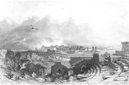 The circumstance which most strongly impresses a traveller in visiting these ancient theatres, is the dismal contrast presented by their first and present state. These crowded scenes of life and enjoyment are now the most dismal and desolate spots among the ruins; they seem to be the place to which every thing that is foul and venomous repair, attracted perhaps by the shelter and concealment their more perfect state affords. “The busy hum of men” is exchanged for the serpent’s hiss and the eagle’s scream−the crowded seats