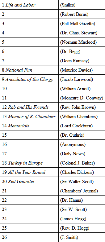Scotch Wit and Humor is a fairly representative collection of the type of wit and humor which is at home north of the Tweed – and almost everywhere else – for are not Scotchmen to be found everywhere? To say that wit and humor is not a native of Scotch human nature is to share the responsibility for an inaccuracy the author of which must have been as unobservant as those who repeat it. It is quite true that the humor is not always or generally on the surface – what treasure is? – and it may be true, too, that the thrifty habits of our northern friends, combined with the earnestness produced by their religious history, have brought to the surface the seriousness – amounting sometimes almost to heaviness – which is their most apparent characteristic. But under the surface will be found a rich vein of generosity, and a fund of humor, which soon cure a stranger – if he has eyes to see and is capable of appreciation – of the common error of supposing that Scotchmen are either stingy or stupid.