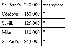 In point of size the edifice ranks third among the cathedrals of Europe. It is the largest Gothic cathedral in the world, larger than Cologne and Milan. The superficial areas of the great cathedrals are as follows: —