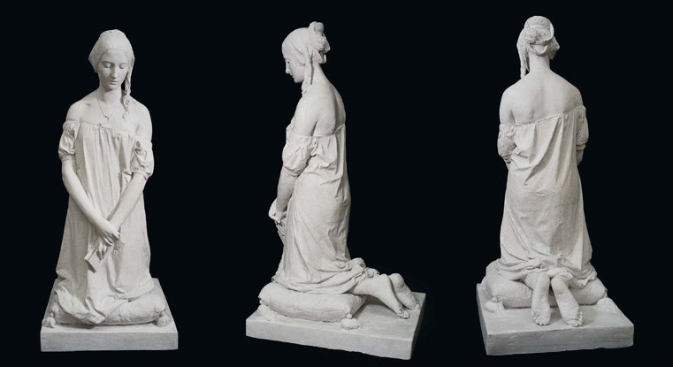 Vincenzo Vela, Morning Prayer, 1846, plaster original, three perspectives.