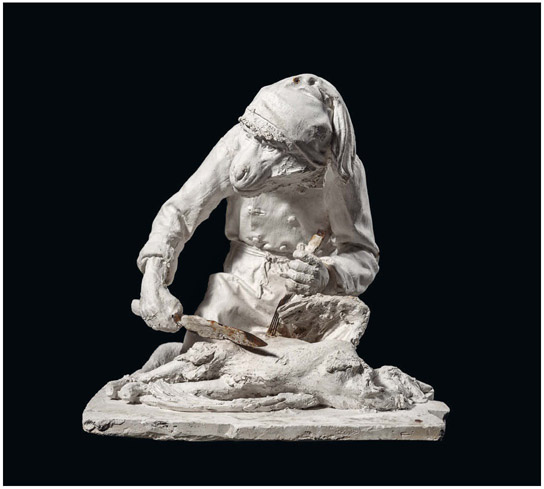 Lorenzo Vela, The Monkey Carving a Chicken, undated, plaster original.