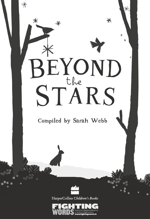 Beyond the Stars would not exist without the superstar writers and illustrators behind this collection – all of whom said yes to contributing without hesitation. Yes, Chris Haughton, it was a little like “herding cats” at times, but very cool and lovely cats! Thanks to the team: Roddy Doyle and Steve Simpson; Derek Landy and Alan Clarke; John Boyne and Paul Howard; Judi Curtin and Chris Judge; Eoin Colfer and Marie-Louise Fitzpatrick; Marita Conlon-McKenna and P. J. Lynch; Michael Scott and Chris Haughton; Gordon Snell and Michael Emberley; Celine Kiernan and Tatyana Feeney; Oisín McGann; Siobhán Parkinson and Olwyn Whelan; and finally, Niamh Sharkey, who illustrated our competition-winner Emma Brade’s story. Mammoth thanks also to Ruth Alltimes, Mary Byrne and their supernova team at HarperCollins Children’s Books for their hard work and support of what is a highly unusual project. And to my wonderful agent, Philippa Milnes-Smith, for her hand-holding and enthusiasm for the book.