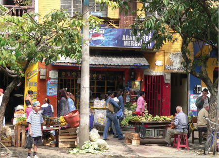 Die Gegend zwischen der Plazoleta Rojas Pinilla, El Prado und der großen Kirche ist ein quirliges Viertel. Unzählige gelbe Taxis, bunte Busse, klapprige Kleinlastwagen verstopfen die Straßen. Menschen hasten durch die engen Gassen, und auf der Avenida entlang der Metro stehen gegen Abend die fliegenden Händler mit Obst, Fisch, Fleisch und allen cachivaches (Kleinkram) der Welt dicht an dicht. Der Verkehrslärm bricht nie ab. Dieser Teil des Stadtzentrums scheint sich, äußerlich betrachtet, von den benachbarten Vierteln nicht zu unterscheiden. Und dennoch liegt zwischen der Plaza Botero und der Zone der Prostitution eine unsichtbare Grenze. Man sieht keinen Schlagbaum, keine Wächter, aber man fühlt den Übergang von einer in die andere Welt, von der Normalität in die Verwerflichkeit. Man spürt es auf der Haut.