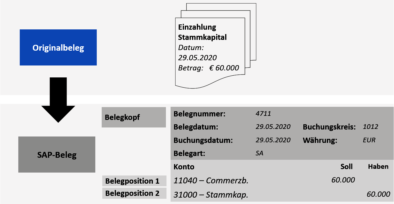 Zu den wichtigsten Aufgaben des Buchhalters zählt eine lückenlose, zeitlich und sachlich geordnete Aufzeichnung aller Geschäftsvorgänge (= Buchungen) anhand von Belegen. Der Beleg ist sowohl die Basis jeder Buchung in der Finanzbuchhaltung (manueller Beleg) als auch das Ergebnis der erfolgten Buchung in SAP S/4HANA (gebuchter EDV-Beleg).