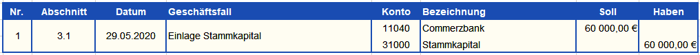Abbildung 3.6: Buchung der Kapitaleinlage