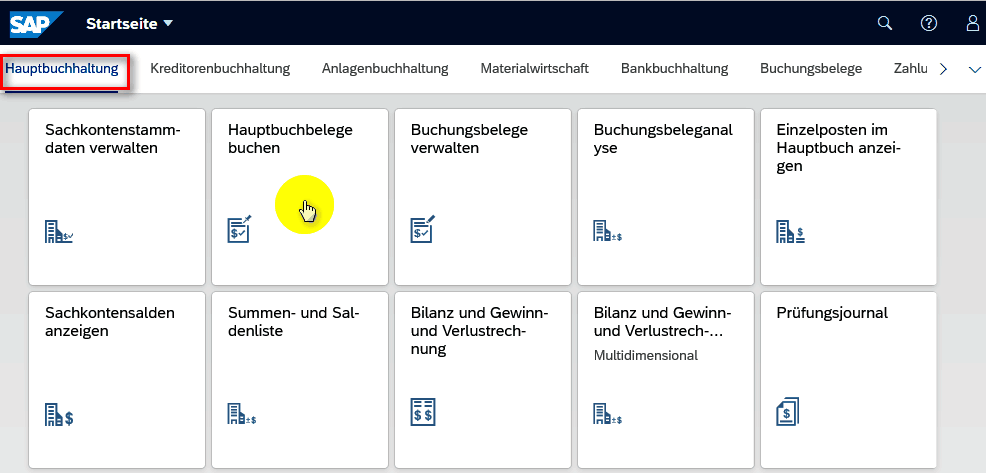 Für die Erfassung einer Buchung im Hauptbuch rufen Sie die App »Hauptbuchbelege buchen« auf (siehe Abbildung 3.4).