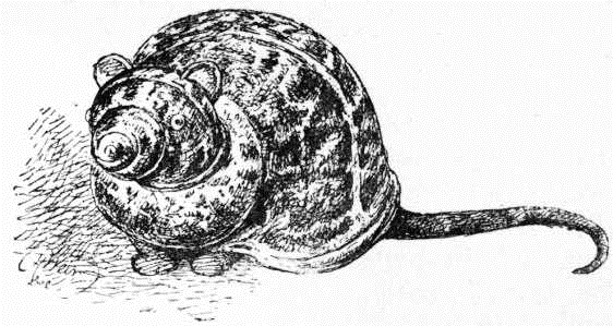 But I have almost forgotten the old-time custom of, when the young ladies came from school, bringing home a "sampler," in the days before linen stamping was known or thought of. On these in needlework were alphabets, numbers, trees (such trees), dogs, and cats. Then, too, there were cats of silk and satin, in needlework, and cats in various materials; but the most curious among the young people's accomplishments was the making of tortoiseshell cats from a snail-shell, with a smaller one for a head, with either wax or bread ears, fore-legs and tail, and yellow or green beads for eyes. Droll-looking things—very. I give a drawing of one. And last, not least often, the edible cats—cats made of cheese, cats of sweet sponge-cake, cats of sugar, and once I saw a cat of jelly. In the old times of country pleasure fairs, when every one brought home gingerbread nuts and cakes as "a fairing," the gingerbread "cat in boots" was not forgotten nor left unappreciated; generally fairly good in form, and gilt over with Dutch metal, it occupied a place of honour in many a country cottage home, and, for the matter of that, also in the busy town. If good gingerbread, it was saved for many a day, or until the holiday time was ended and feasting over, and the next fair talked of.