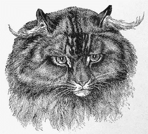 I have now concluded my remarks on the long-haired varieties of cats that I am at present acquainted with. They are an exceedingly interesting section; their habits, manners, forms, and colours form a by no means unprofitable study for those fond of animal life, as they, in my opinion, differ in many ways from those of their "short-haired" brethren. I shall not cease, however, in my endeavours to find out if any other long-haired breeds exist, and I am, therefore, making inquiries in every direction in which I deem it likely I shall get an increase of information on the subject, but hitherto without any success. Therefore, I am led to suppose that the three I have enumerated are the only domesticated long-haired varieties. The nearest approach, I believe, to these in the wild state is that of the British wild cat, which has in some instances a mane and a bushy tail, slightly resembling that of the Russian long-hair, with much of the same facial expression, and rather pointed tufts at the apex of the ears. It is also large, like some of the "long-haired" cats that I have seen; in fact, it far more resembles these breeds than those of the short hair. I was much struck with the many points of similitude on seeing the British wild cat exhibited by the Duke of Sutherland at the first cat show at the Crystal Palace in July, 1871. I merely offer this as an idea for further consideration. At the same time, allow me to say that I have had no opportunity of studying the anatomy of the British wild cat, in contradistinction to that of the Russian, or others with long hair. I only wish to point out what I term a general resemblance, far in excess of those with short hair. I am fully aware how difficult it is to trace any origin of the domestic cat, or from what breeds; it is also said, that the British wild cat is not one of them, still I urge there exists the similarity I mention; whether it is so apparent to others I know not.