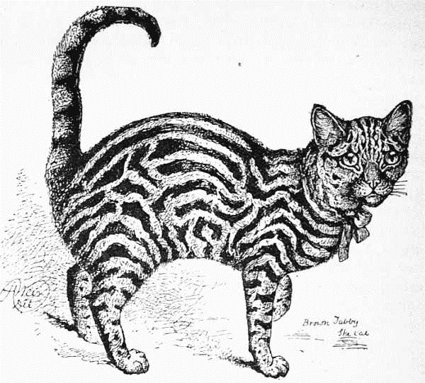 "Her petticoat of satin,Her gown of crimson tabby."Be that as it may, I think there is little doubt that the foregoing was the origin of the term. Yet it was also called the brinded cat, or the brindled cat, also tiger cat, with some the gray cat, graymalkin; but I was rather unprepared to learn that in Norfolk and Suffolk it is called a Cyprus cat. "Why Cyprus cat?" quoth I. "I do not know," said my informant. "All I know is, that such is the case."