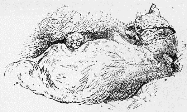 A few more days, and their mother leads them forth, with many an anxious look and turn, softly calling in a subdued voice, they halting almost at every step; suddenly, oft at nothing, panic-stricken, quickly scamper back, not one yet daring to follow where all is so oddly strange and new, their natural shyness being stronger than the love of freedom. Again, with scared look and timid steps, they come, when again at nothing frightened, or with infantile pretence, they are off, "helter-skelter," without a pause or stay, one and all, they o'er and into their basket clamber, tumble in, turn about and stare with a more than half-bewildered, self-satisfied safety look about them. Gaining courage once more, they peer about, with dreamy, startled, anxious eyes, watching for dangers that never are, although expected. Noiseless comes their patient, loving mother; with what new delight they cling about her; how fondly and tenderly she tends them, lures, cossets, coaxes, and talks, as only a gentle mother-cat can—"There is no danger, no!—nothing to fear. Is she not with them; will she not guard, keep and defend them? There is a paradise out there; through this door; they must see it. Come, she will show them; come, have confidence! Now, then—come!" When followed by her three little ones, and they with much misgiving, she passes out—out into the garden, out among the lovely, blooming, fragrant roses, out among the sweet stocks and the damask-coloured gilly-flowers, the pink daisies, brown, red, and orange wallflowers, the spice-scented pinks, and other gay and modest floral beauties that make so sweet the soft and balmy breath of Spring. Out into the sunshine, almost dazed amid a flood of light, warmed by the glowing midday sun. Light above, light around and everywhere about; while the sweet-scented breezes come joy-laden with the happy wild birds' melodious songs; wearied with wonderment, under the flower-crowned lilacs they gather themselves to rest. How beautiful all is, how full of young delights; the odorous wind fans, soothes, and lulls them to rest, while rustling leaves softly whisper them to sleep—they and their loving mother slumber unconscious of all things, and with all things at peace. There, stretched in the warm sunshine asleep, possibly dreaming of their after-life when they are kittens no longer, they rest and—sleep.